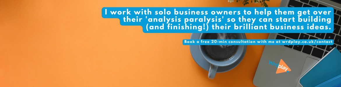 Turn your overwhelming business idea into a simple process that creates comfortable, long-term momentum until you reach your goal. Im a Project Consultant who helps small businesses get the best outcomes for their projects. I also help overthinkers create simple prototypes of their projects to test the first phase of their ideas so they can start quickly and build on their success without feeling overwhelmed by longer-term goals. Thinking about the best next step for your business idea? Learn how my consulting service can help: https://wrdplay.co.uk/project-consulting-service/